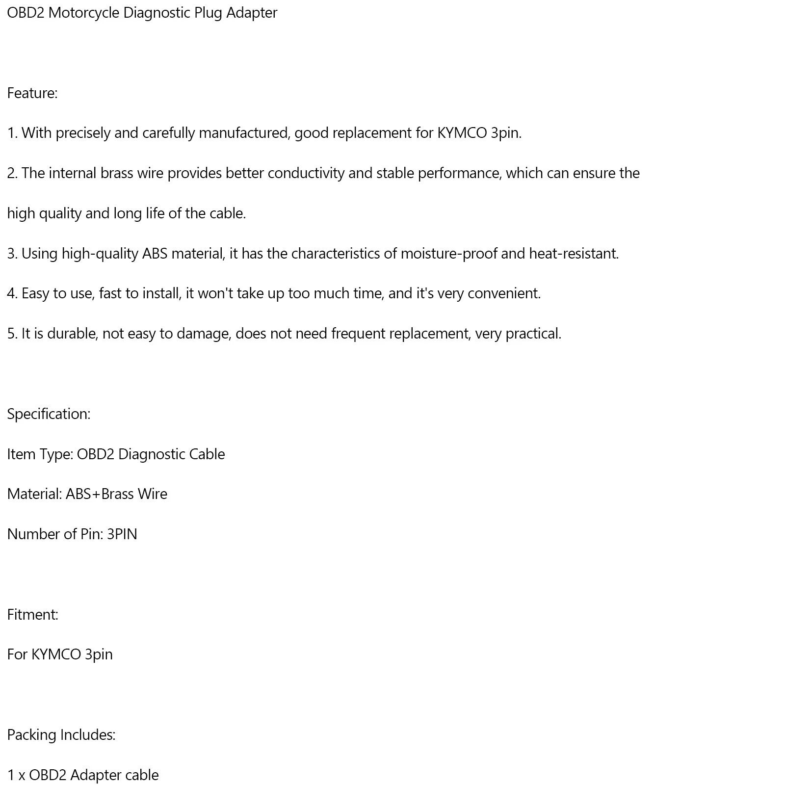 Upgrade your diagnostic capabilities today with the 3 Pin to 16 Pin OBD Adapter for KYMCO F2!