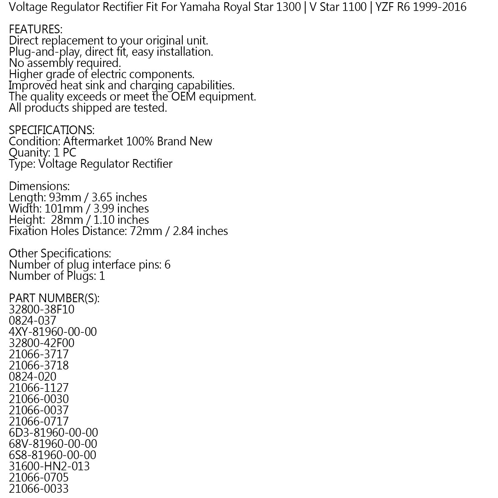 Voltage Regulator Rectifier Fit For Yamaha Royal Star 1300 | V Star 1100 | YZF R6 1999-2016